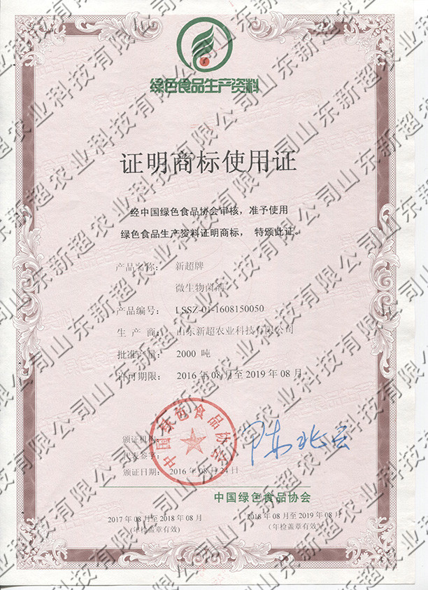 微生物菌剂证明商标使用证 - 幸运飞艇168体彩开奖官网